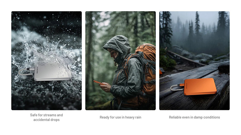 La batterie externe est compatible avec les principaux protocoles de charge rapide : PD, QC3.0 et SCP, assurant ainsi une recharge rapide de votre téléphone, écouteurs sans fil ou montre connectée. Sa fonction Pass-Through permet de recharger deux appareils simultanément, tandis que son câble USB-C intégré s'insère directement dans le port USB-C de la batterie pour le ranger facilement et peut également servir de dragonne.