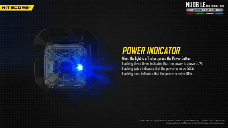 Nouveauté Nitecore 2022, la NU06 LE est une petite lampe de signalisation spécialement conçus pour les forces de l’ordre afin de se signaler ou de s’identifier entre eux. Elle est équipée de 4 LEDS haute performance de différentes couleurs à savoir Rouge, Vert, Bleu et Blanc. Chaque couleur dispose d’un mode constant ou d’un mode clignotant. Un mode Clignotant bleu et rouge est également présent. La lampe dispose d’une batterie Li-ion intégré de 250mAh qui est directement rechargeable en type-c. Elle est livrée avec 3 supports différents et directement compatible avec les rails de casque ARC afin de la fixer où vous le souhaitez !