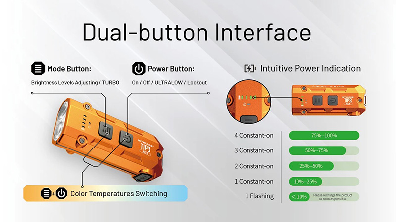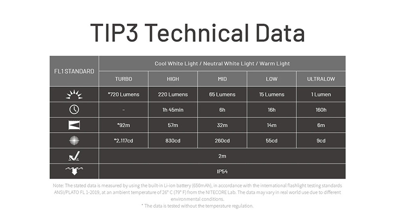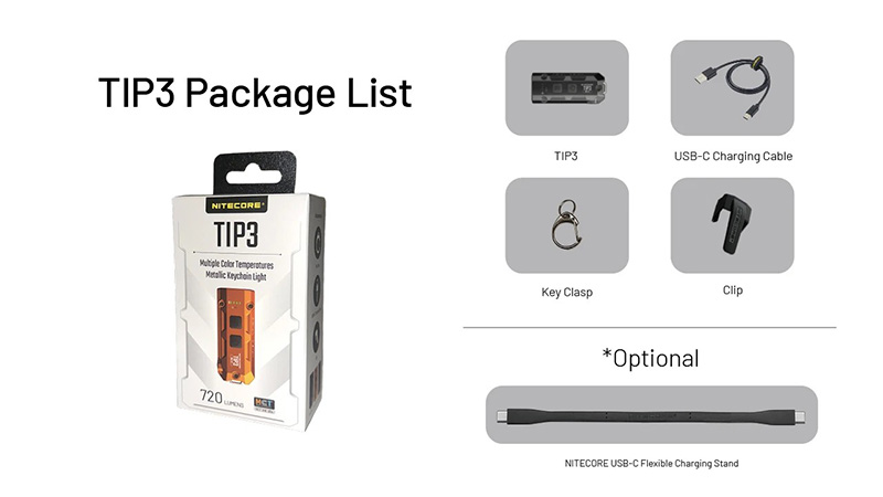 Rechargeable en 1h30 via port USB-C, la TIP3 est l'outil d'éclairage idéal pour les urbains actifs et les amateurs d'EDC exigeant un équipement compact, polyvalent et performant.