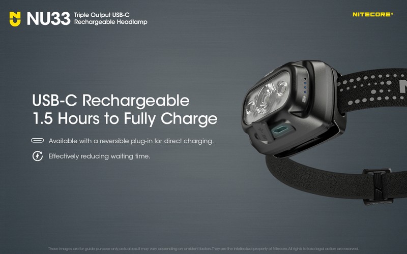 Nouveauté 2022, la NU33 est une lampe ultra légère de 95,5g à triple sortie lumineuse et rechargeable en USB-C.