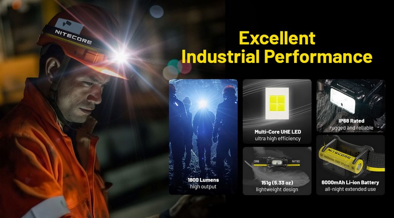 Lampe frontale rechargeable ultra légère, la Nitecore NU53 éclaire à 175 mètres de distance et dispose d'une puissance maximale de 1800 lumens.